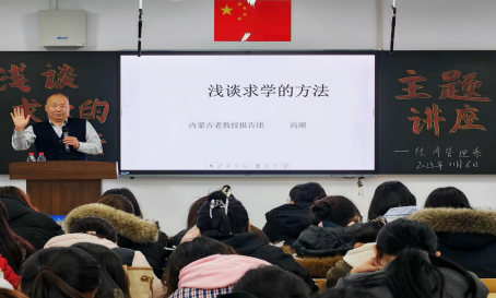 关心下一代工作委员会高潮教授为经济管理系同学们讲授《“浅谈求学的方法”讲座开讲——助力学子探索知识旅途》,本次讲座旨在营造浓厚的学习氛围,助力学生成长成才。全面助力学子提升批判性思维能力、终身学习能力与综合竞争力,为培养新时代一流人才奠定坚实基础。