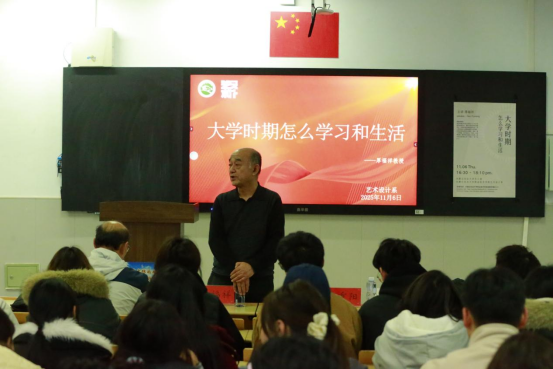 关心下一代工作委员会厚福祥教授为艺术设计系同学们讲授《大学时期怎么学习和生活》,此次主题讲座,内容丰富、针对性强,不仅为同学们提供了科学的学习方法与生活指导,更帮助大家进一步明确了大学阶段的奋斗方向,有效缓解了新生的迷茫情绪。同学们纷纷表示,本次讲座收获颇丰,今后将以更饱满的热情、更清晰的规划投入到学习与生活中。